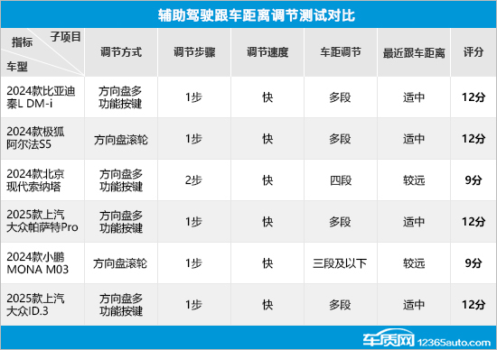 在车速调节项目中,6款车型整体表现都符合预期,虽然调节方式存在差异,但是在调节步骤和调节速度方面表现一致,未拉开差距。相比之下,2024款小鹏MONA M03(以下简称MONA M03)在调节幅度方面的表现要稍逊于另外5款车型,由于仅支持单一速度调节,因此有所减分。
