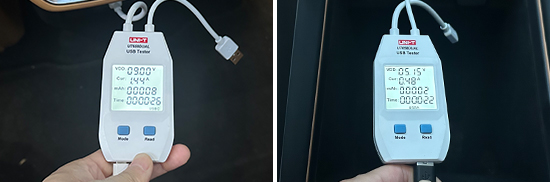 同时,我们对各个USB接口的电压与电流进行了测试,USB Type-A接口的最高电压和最高电流为5.15V和0.48A;USB Type-C接口的最高电压和最高电流为9V和1.44A左右,充电效率较高。