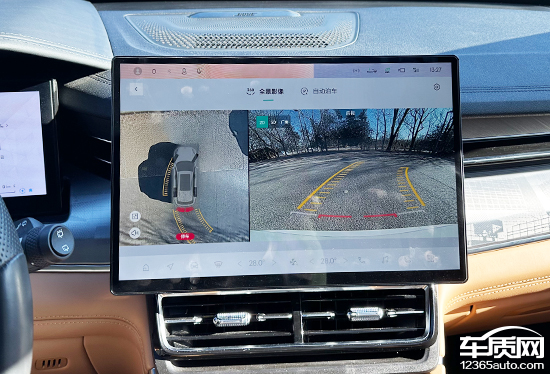评测车配备了360度全景影像和透明底盘/540度影像,实测整体画质清晰度不错且没有畸变。同时,画面支持多个角度查看,并配有可随动转向的倒车辅助线,帮助驾驶者更轻松地完成倒车入库等动作,实用性表现符合预期。