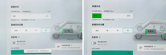 此外,对于充电效率我们也进行了测试。实测人员使用快充桩充电10分钟后(波峰用电),电量从0充至23%,续航里程增加44km,与车辆电脑预计的用时基本吻合。