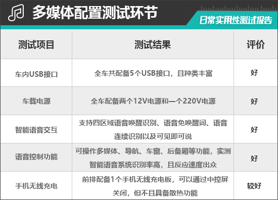 经过实测,评测车的智能语音系统能够全部识别并执行上述指令,并且语音识别准确,反应速度较快。同时支持四区域语音唤醒识别、语音连续识别等功能,整体的使用体验感比较不错,达到了行业主流水平。