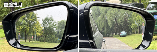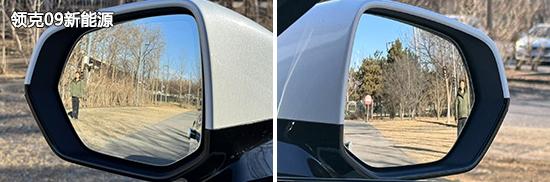 在外后视镜视野范围测试环节中,四款车型虽然均未采用双曲率镜片,但测试数据有所差异。其中,除领克09新能源外,其余三款车型的左右外后视镜视野范围角度均超过同级别车型测试均值。