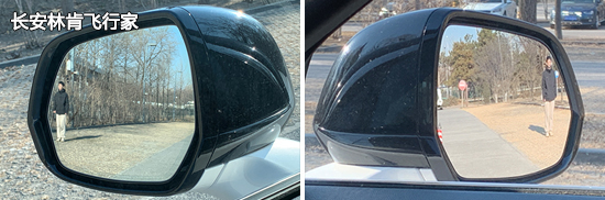 在安全测试环节,我们针对车辆日常使用过程中最常用到的视野范围进行了测量和比对。测试过程中,车内所有座椅均已调整至最低状态,所测出的数据与驾驶者正常使用时均有一些偏差,仅供参考。