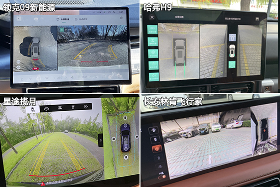 在影像辅助系统方面,四款车均配备360度全景影像系统,整体画质比较清晰。同时,除长安林肯飞行家外,其余三款车型还配备了透明底盘/540度影像功能,能够更好地帮助驾驶者对车辆周围情况作出判断。