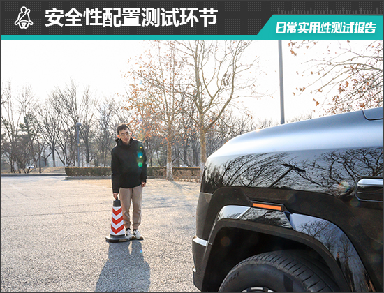 在测试前方视野环节,我们采用高70cm的桩桶作为参照物,随后调整车距,直至在主驾驶位可以看到桩桶上沿。经过测试,桩桶与车头最终测得的数据为3.381m,在测试过的同级别车型中处于中游水平。