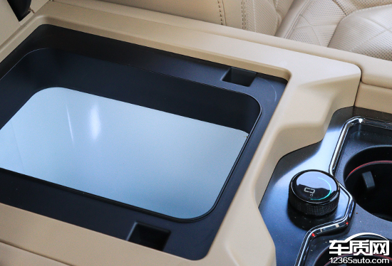 前排扶手箱内部配备有冰箱,虽然容积不算很大,但是放下几瓶常规大小的饮料并无任何压力,基本能够满足日常使用所需。通过旋钮和中控屏都能控制冰箱温度,支持-6℃-50℃的区间调节。
