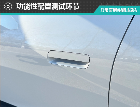 在功能性配置方面,评测车配备了全车无钥匙进入功能,只需携带遥控钥匙走到车旁车辆便可自动解锁,反之则自动上锁,实测解锁和上锁过程均十分顺畅。同时,车内并未配备一键启动按键,与绝大多数纯电动车相同,踩下刹车直接挂挡即可行驶。