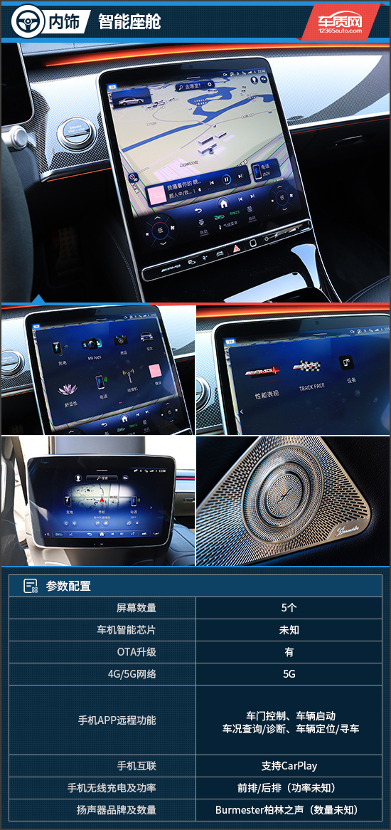 中控区域搭载了12.8英寸中控屏,内置第二代MBUX智能人机交互系统,不仅支持CarPlay互联,而且还提供腾讯视频、QQ音乐等第三方APP,满足用户使用需求。“读心语音助理”全面升级,常用功能无需唤醒,可立即执行,并支持15秒延迟聆听,解放用户双手。此外,奔驰引以为傲的Burmester柏林之声音响也有所配备,音质效果完美无瑕。