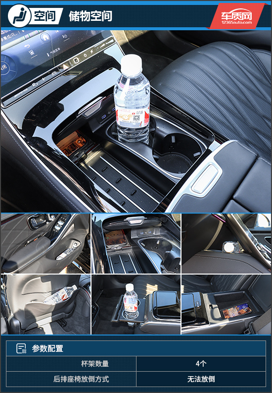 无论是前排还是后排,随处可以看见储物空间。前排盖板内部拥有两个水杯架和两个手机槽,其中一个支持手机无线充电。另外,中控屏的背部还拥有一个小型的储物槽,可摆放一些小件物品。