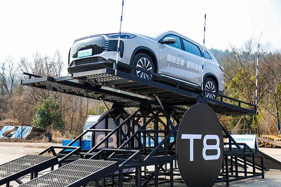 除此之外,此次场地试驾还配有交叉轴与30°爬坡道具,考验了车辆的攀爬能力和通过性,面对这两项道具,电四驱系统响应迅速,脱困能力也要超出城市SUV。当然我们也需要说明的是,风云T8毕竟还是以家用为主,它虽然有一定的走烂路的能力,但还是不建议去挑战难度较大的越野路段。