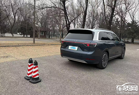 后方视野测试中,依旧将桩桶固定摆放,随后移动车辆直至可以观察到桩桶上沿为止。经实测,后方视野所测得的距离为13.711m,同样在测试过的同级别车型中处于上游水平。