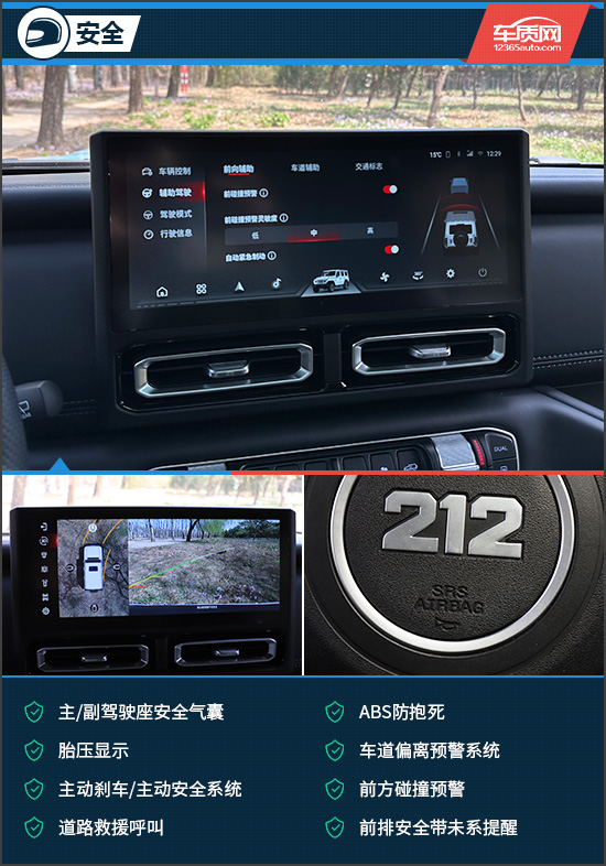 当然,越野才是212 T01长风的重头戏,评测车标配前、后桥差速锁以及中央差速器锁止功能,这在同级中十分少见,能够快速识别轮速差,智能分配扭矩,无需频繁手动操作。并且评测车还配备了低速四驱,可将扭矩再放大2.5倍,轻松应对各种复杂路况。