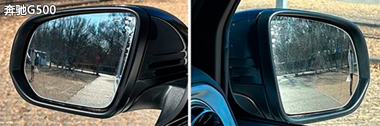 在外后视镜视野范围测试环节中,奔驰G500和坦克400 Hi4-T采用了双曲率镜片,但两款车型的测试成绩并非四款车型中最佳。相比之下,哈弗H9表现更优,左右外后视镜视野范围角度均优于同级别车型测试均值,达到同级别中上游和上游水平;坦克400 Hi4-T表现欠佳,左右外后视镜视野范围角度均未达到同级别车型测试均值。