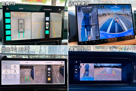 在影像辅助系统方面,四款车均配备360度全景影像系统,并带有透明底盘功能,整体画质比较清晰,能够帮助驾驶者对车辆周围情况作出判断。