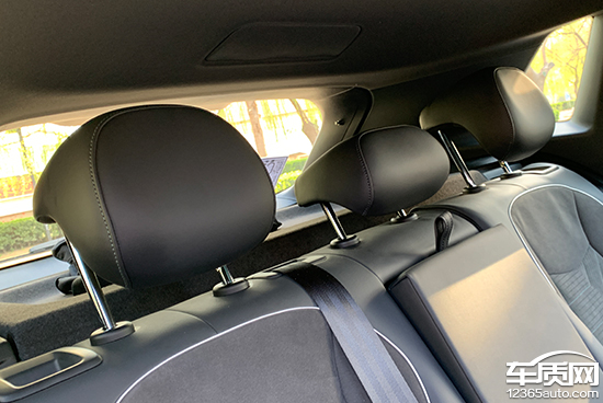 评测车后排座椅提供了三个头枕,且均支持上下调节,只不过中间头枕面积要小于两侧,枕靠舒适性会受一些影响。