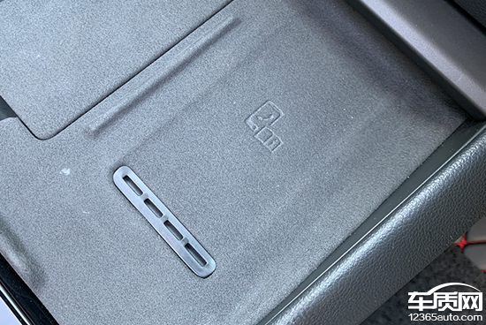 评测车在前排中控台下方配备了1个手机无线充电板,充电功率为15W,并提供散热通风口。手机无线充电板位置设计合理,驾驶员拿放手机方便。