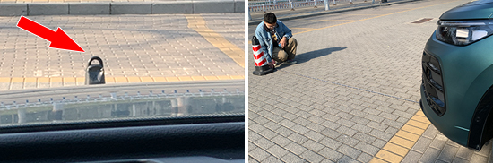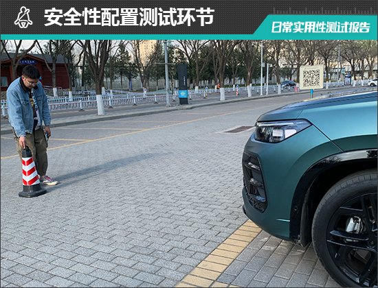 在测试前方视野环节,我们采用高70cm的桩桶作为参照物,随后调整车距,直至在主驾驶位可以看到桩桶上沿。经过测试,桩桶与车头最终测得的数据为2.805m,在测试过的同级别车型中处于中游水平。