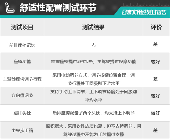 二、舒适性配置测试环节