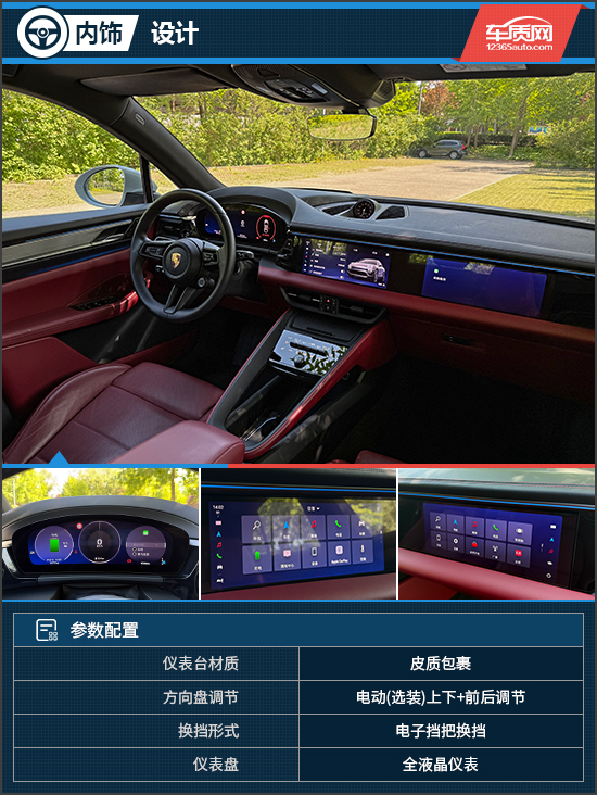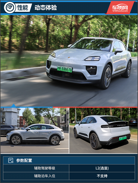 评测车搭载双电机,总功率300kW,总扭矩650N·m,CLTC纯电续航里程为676km。与之匹配的传动系统为单速固定齿比变速箱,官方0-100km/h加速时间为5.2s。值得一提的是,在800V架构的加持下,保时捷纯电动Macan 4的电量从10%充至80%仅需21分钟,补能效率很高。