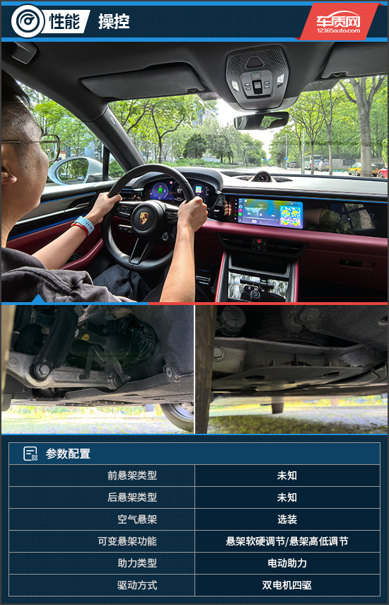 评测车选装了含车身水平高度控制和行车高度调节功能的自适应空气悬架,并支持保时捷主动悬挂管理系统(PASM)。实际体验,这套悬架所采用的双阀门技术拓宽了性能与舒适之间的可调范围,且不同驾驶模式之间的差异更为显著。在运动模式下,底盘紧绷,路感清晰,每通过一个弯道都像在向你诠释何为精准操控。