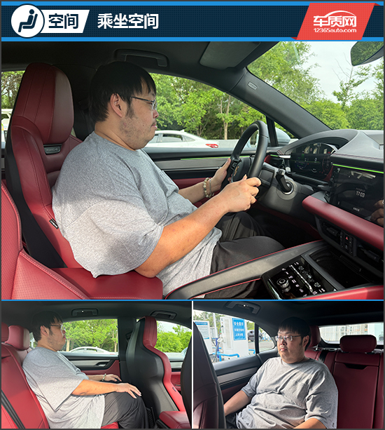 乘坐空间方面,身高180cm的体验者在前排调整好坐姿后,头部空间约为一拳。保持前排座椅不动,体验者坐进后排时,头部空间同样约为一拳,腿部空间约为一拳一指,乘坐空间较为宽敞。