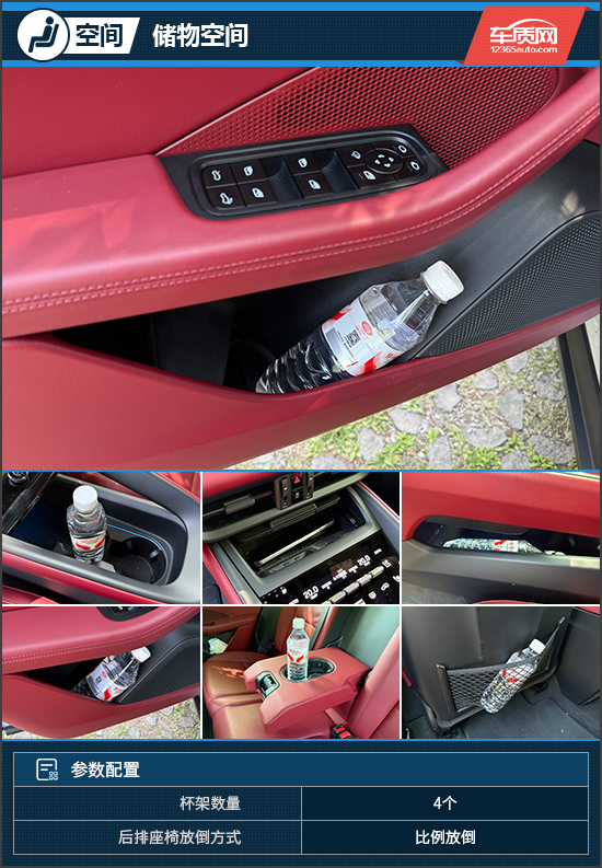 储物空间方面,储物槽数量算不上多,但布局合理,日常随身物品都有地方放置。其中,全车四个杯架内部均配备了限位装置,储物槽底部也有橡胶衬底,细节表现令人满意。