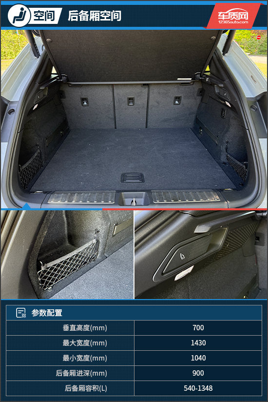 后备厢支持电动开启,内部布局规整,两侧均配备了置物网以及伸缩绑带,实用性出色。此外,后排座椅支持比例放倒,并且在后备厢内部两侧能找到快速放倒后排座椅的拉手,操作便捷。