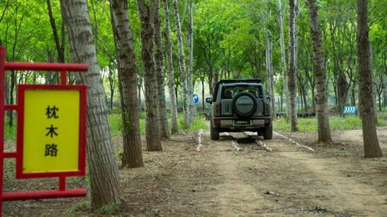 入场后第一个项目没什么强度,是我们熟悉的S弯。虽然哈弗猛龙燃油版带备胎的车型车长达到了4米8,车宽也达到了1米95,但是在540度全景影像系统的加持下,整体通过的过程中并没有什么太大压力。通过中控屏幕,驾驶员可以非常清晰的掌握车辆与两侧障碍物的距离,就算遇到比较狭窄的通道,也能顺利通过。