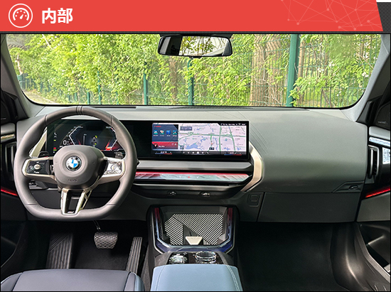 在内部感受评价中,全新华晨宝马X3采用家族最新的设计语言,全液晶仪表与中控屏组成一体式悬浮曲面屏,并采用隐藏式空调出风口设计,科技氛围浓郁。岛台区域配备了小尺寸换挡拨杆以及水晶装饰的控制旋钮,彰显精致感。此外,中控台和车门位置还配备了主动式氛围灯,提供出色的交互体验。前排手机无线充电板采用倾斜式布局,设计初衷是为了方便手机充电,不过由于杯架位置紧随其后,放置水杯或水瓶后会妨碍手机拿放。