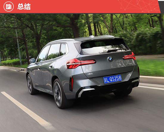 综合以上各项测试结果得出结论,全新华晨宝马X3在客观数据和主观感受方面的整体表现达到了专家评审团预期。在客观数据层面,车身工艺和漆膜厚度表现基本令人满意,不过漆膜喷涂均匀性依然存在提升空间。在主观感受层面,全新内外饰设计充满科技感与运动气息,后排乘坐空间得到大幅提升,升级后的车机系统提供更加人性化的交互体验。相对而言,发动机舱盖未配备隔音棉以及后排杯架缺失等问题仍有待优化。综合来看,全新华晨宝马X3的商品性表现在测试过的同级别车型中处于上游水平。