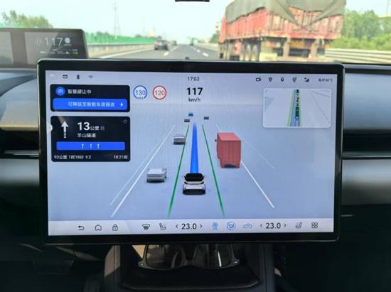 我们只要设定好导航信息,然后按两次方向盘上的智驾按钮,车辆的智能驾驶辅助系统就能被激活了,整套系统的处理速度以及能力都是极其强大的,它可以在一瞬间对车辆周边的行人、自行车、汽车、障碍物、车速以及标志标线等进行识别,并第一时间做出正确的判断。