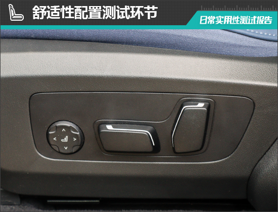 舒适性配置方面,评测车前排座椅调节按键位于座椅侧面,位置设计合理,操作简单方便。主驾驶位座椅支持记忆功能,前排座椅仅配备加热功能。作为一款豪华品牌中型SUV,时下主流的座椅通风及按摩功能均未能提供,整体表现确实难称优秀。