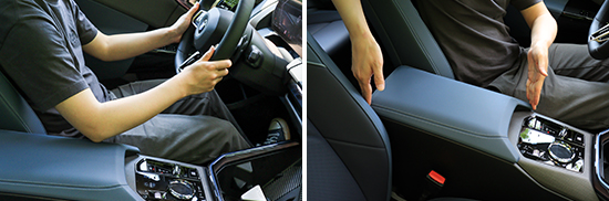 前排中央扶手面积适中,得益于软质材料包裹,因此整体触感较为舒适。扶手箱并不支持前后移动或上下角度调节,在正常驾驶坐姿下,驾驶员的手肘只能勉强搭在上面。