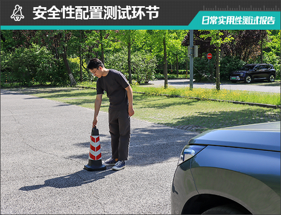 在测试前方视野环节,我们采用高70cm的桩桶作为参照物,随后调整车距,直至在主驾驶位可以看到桩桶上沿。经过测试,桩桶与车头最终测得的数据为2.943m,在测试过的同级别车型中处于中游水平。
