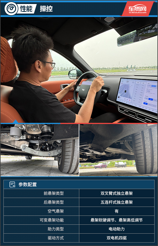 作为年度改款车型,评测车在延续原有舒适性的基础上,重点对操控性能进行了强化,这一提升得益于全新配备的双腔双阀魔毯空气悬架,它也是首款标配该规格空气悬架的中国品牌量产车型。