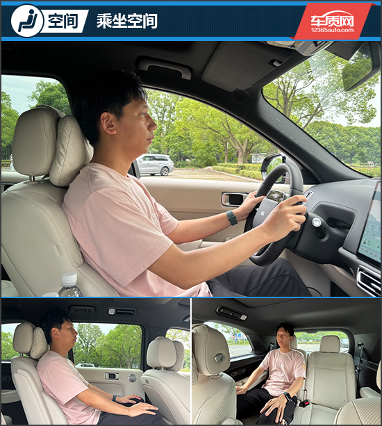 评测车采用2+2+2形式的三排6座布局(受限于试驾时间,照片未能全面展示所有座椅的乘坐空间,敬请谅解),身高180cm的体验者在前排就座后,头部及横向空间表现出色。第二排为独立座椅,宽大舒适,配备独立扶手,乘坐体验颇似传统MPV。座椅支持多向调节,调至最靠后位置时,空间感与舒适性均达上乘水准。