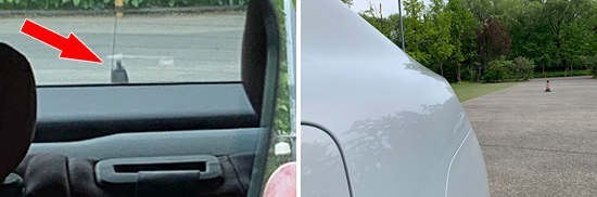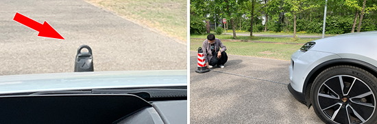 在测试前方视野环节,我们采用高70cm的桩桶作为参照物,随后调整车距,直至在主驾驶位可以看到桩桶上沿。经过测试,桩桶与车头最终测得的数据为2.575m,在测试过的同级别车型中处于中上游水平。