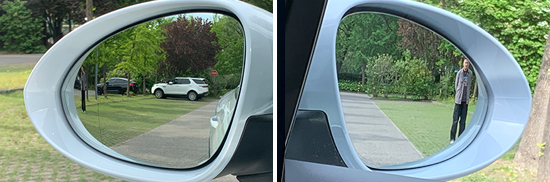 评测车的左侧外后视镜采用双曲率镜片,右侧外后视镜为普通镜片。经实测,左、右外后视镜视野范围分别为27.1°和21.6°,在测试过的同级别车型中,分别处于中上游和中游水平。