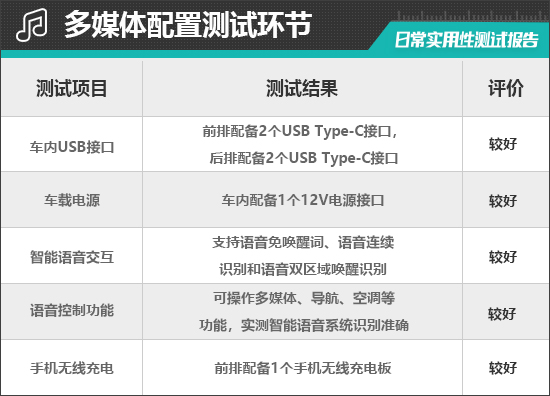 评测车共配备4个USB Type-C接口,其中,前排2个接口位于中控台下方,后排2个接口位于后排空调出风口下方,布局合理但兼容性不佳;同时,车内还提供1个12V电源接口,能够满足车内乘客多种电子设备的用电需求。