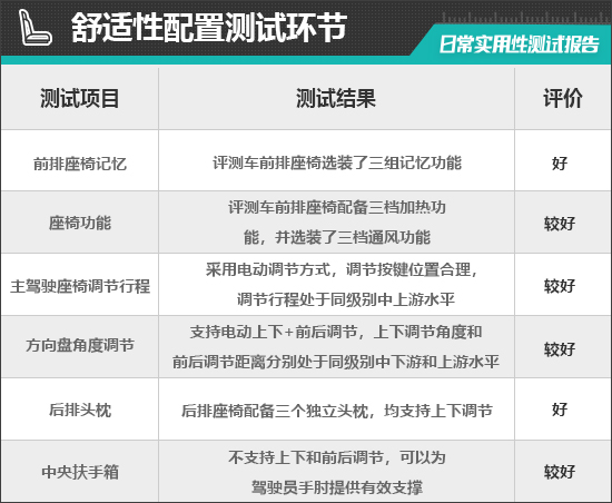 二、舒适性配置测试环节