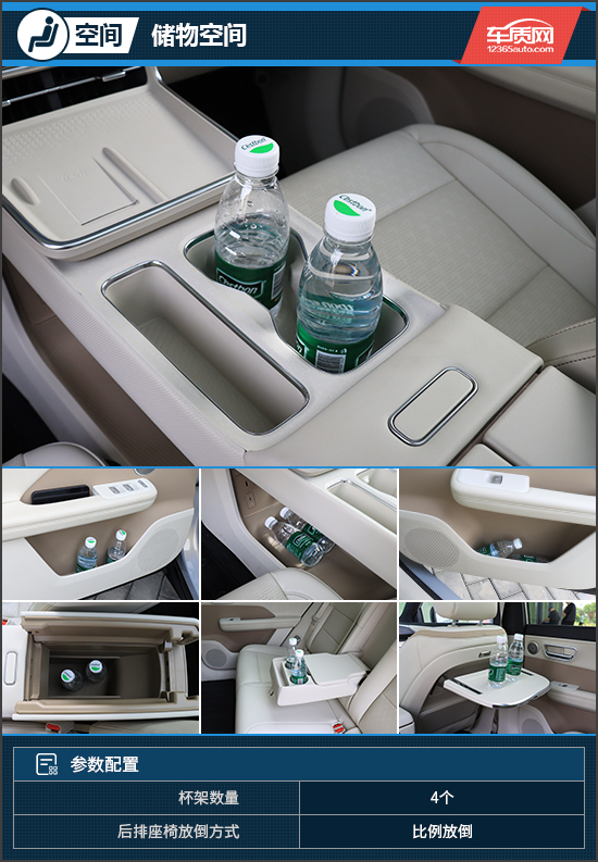 储物空间方面,评测车配备4个杯架,可以很好地满足车内乘客的使用需求。此外,除了常规的储物空间,评测车在中控台下方设有一处私密的储物空间,内部容积不错,可以放置不少物品。值得一提的是,评测车还配备了一个后排小桌板,非常实用,这在同级中十分少见。
