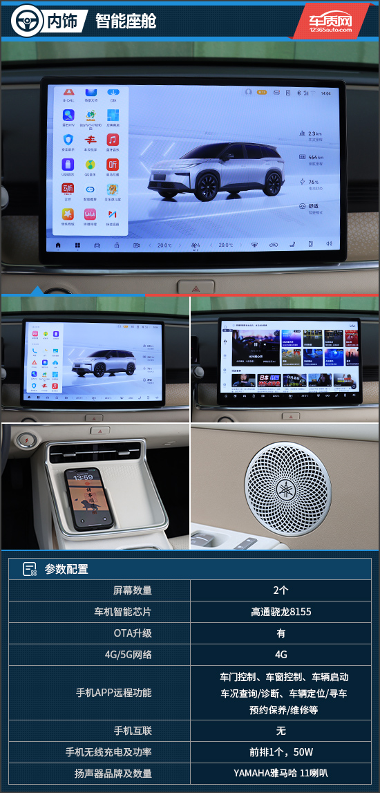 智能座舱方面,铂智3X全系标配14.6英寸中控屏,显示分辨率不错,并且还标配了高通骁龙8155芯片,响应速度也十分出众。此外,车机配备同级少见的四音区独立语音交互控制、可见即可说等功能,更贴合当下消费者的用车需求。同时,评测车还配备了YAMAHA雅马哈11扬声器音响系统,音质表现出众,适合播放潮流音乐。