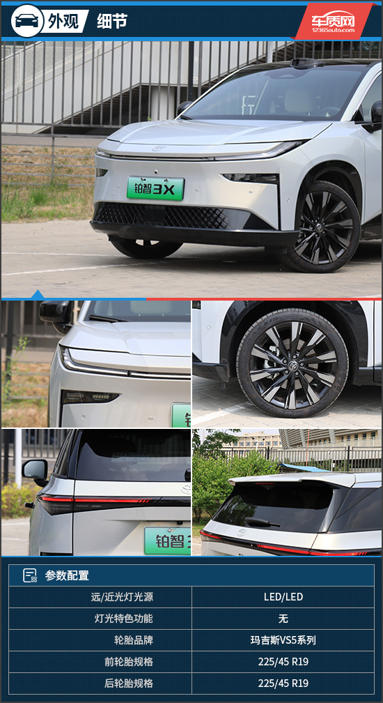 轮毂方面,评测车采用了星芒双色轮毂,视觉效果出色,与之匹配的轮胎来自玛吉斯VS5系列,是一款主打运动、操控的轮胎,具体规格为225/45 R19。