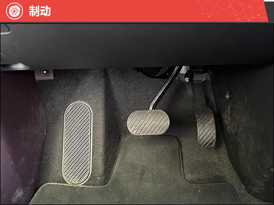 评测车的制动表现十分线性,脚感也比较舒适,符合其家用车的定位。不过,刹车踏板与加速踏板很相像,包括高度也比较相似,新手驾驶需多留意。