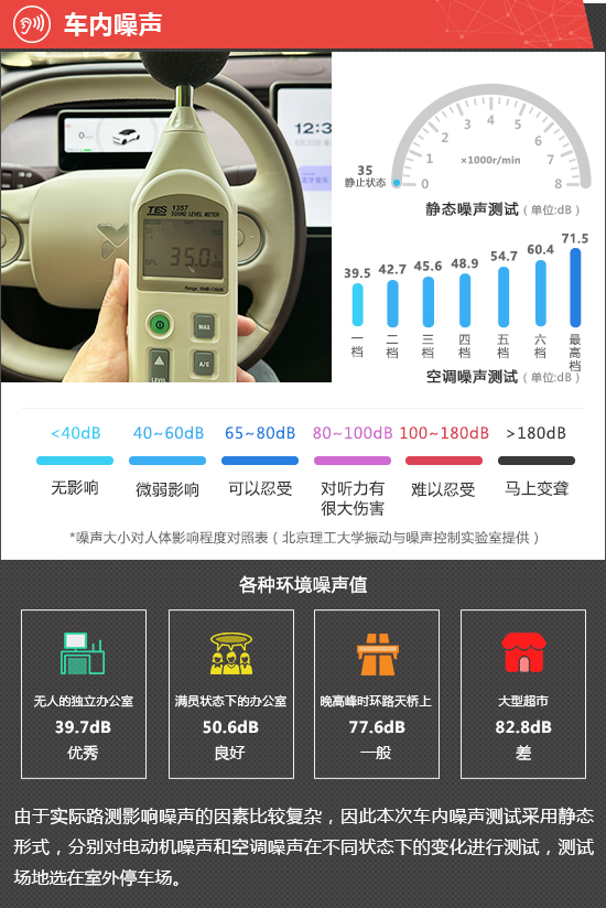 在静态噪声测试环节,2025款firefly萤火虫在静止状态下车内实测噪声值为35dB。由于采用电动机驱动,车辆启动后不会出现明显的噪音。