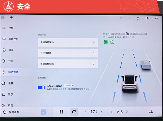 评测车搭载千里浩瀚辅助驾驶系统,具备高速/高架NOA领航辅助,并支持超过300种复杂场景车位的辅助泊车和记忆泊车。开启辅助驾驶功能后,车辆可实现自动跟车与自主刹停,实测跟车距离支持多档调节,最近档位与前车间距适中,不容易被其他社会车辆加塞。