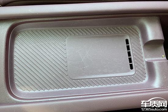 评测车在前排杯架后方配备了1个手机无线充电板,位置设计合理,驾驶员拿放手机方便。同时,无线充电板还提供通风散热口,并支持语音开启和关闭。