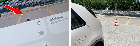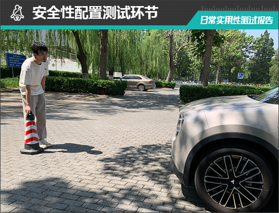 后方视野测试中,依旧将桩桶固定摆放,随后移动车辆直至可以观察到桩桶上沿为止。经实测,评测车配备流媒体后视镜,后方视野所测得的距离为3.505m,在测试过的同级别车型中处于上游水平。