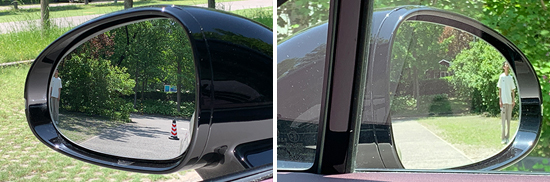 评测车左、右外后视镜均采用普通镜片。经实测,左、右外后视镜视野范围分别为24.5°和20.1°,在测试过的同级别车型中,分别处于中游和中上游水平。