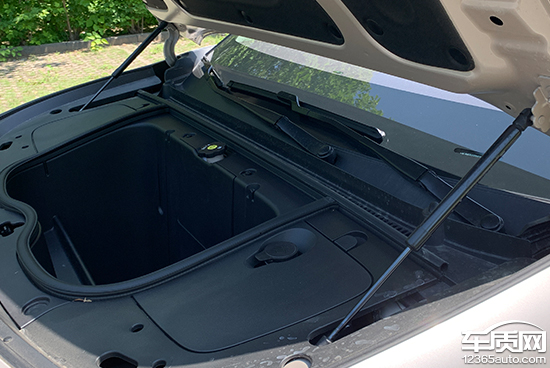 前备厢盖的开启开关位置位于驾驶位前部左下方,开启时需要先拉动开关两下,然后直接抬起前备厢盖即可。前备厢盖采用双液压杆支撑,稳定性好,开启和关闭过程都比较轻松。